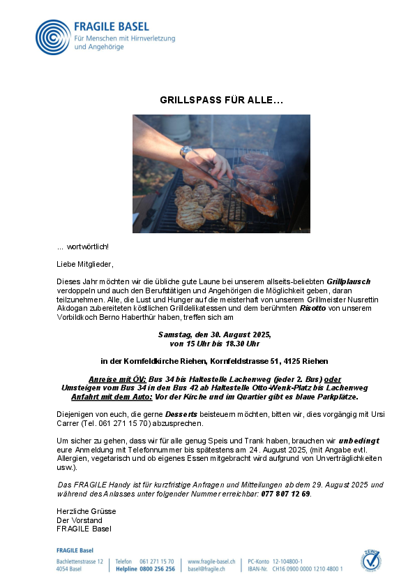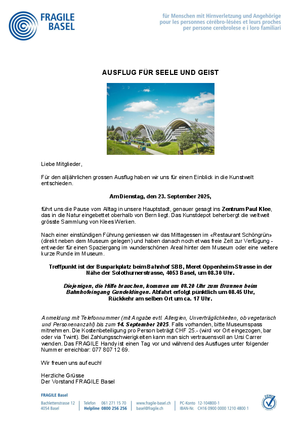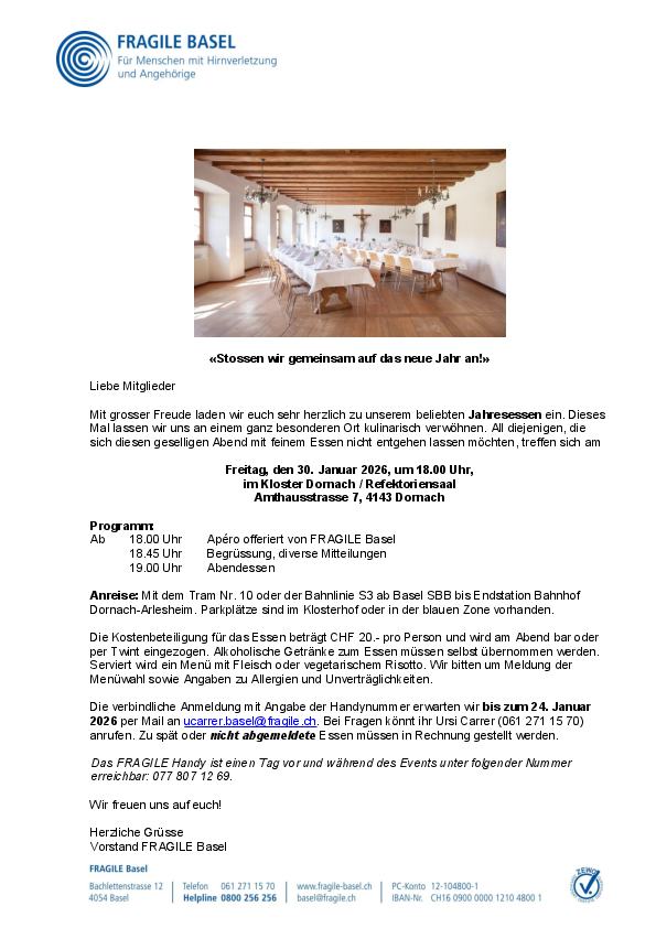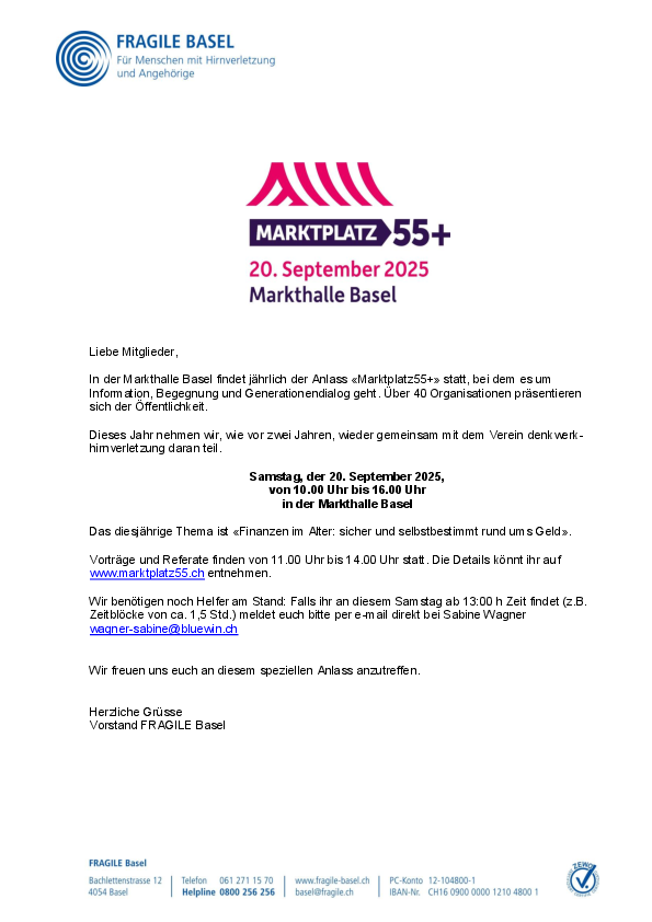 FRAGILE Basel (www.fragile.ch/basel) ist eine von 11 Regionalvereinigungen der Dachorganisation FRAGILE Suisse, Schweizerische Vereinigung für Menschen mit Hirnverletzungen und deren Angehörigen. In Zusammenarbeit mit Fachpersonen unterstützen wir…
