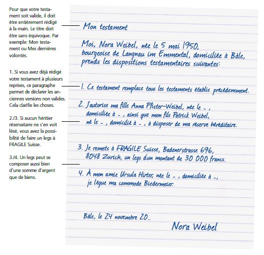 Un testament juridiquement valable peut être aussi simple que cela : page 10 de notre guide testamentaire.