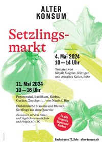 Wie jedes Jahr findet der Setzlingsmarkt beim alten Konsum an der Bachstrasse 72 in Suhr statt - am 11. Mai mit einem Pflanzenstand unseres Blumengartens Sommerwind.